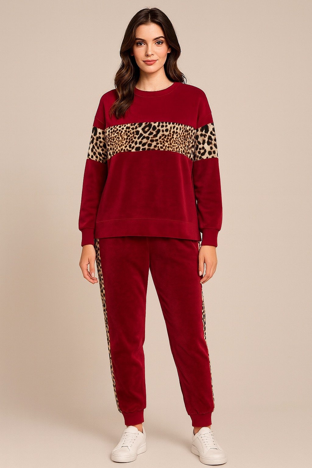 Γυναικείο Σετ Φόρμα Βελούδινο με Λεοπάρ Λεπτομέρειες – Μπορντό
